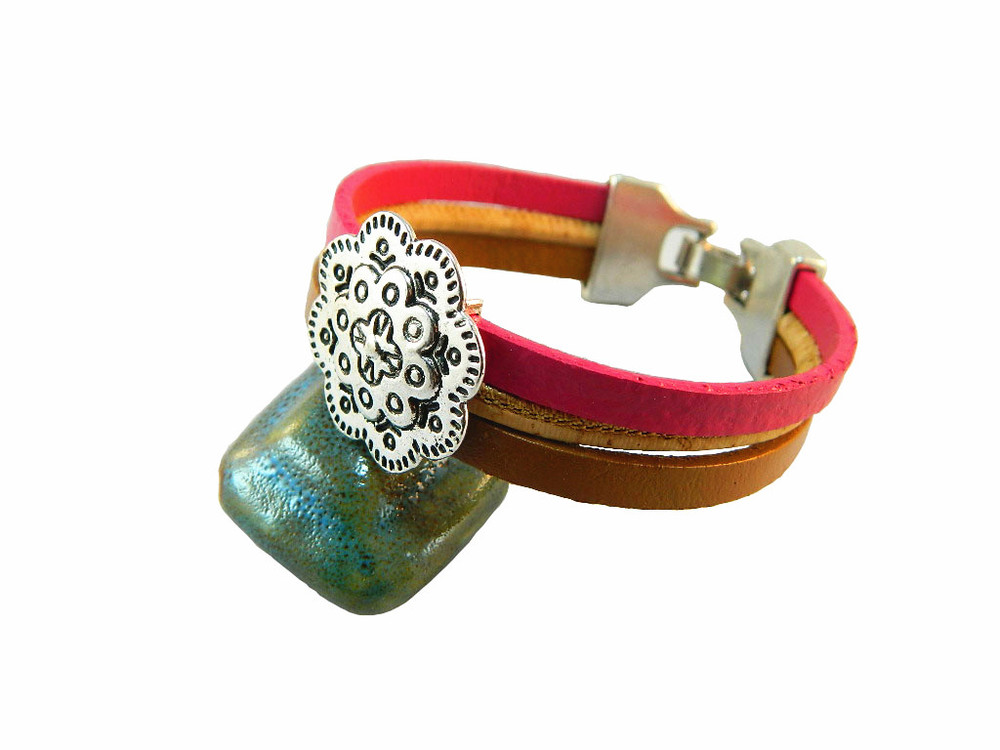 TerraCasca Adjustable Hand Made Cork Ring with Zinc Flower Deceration