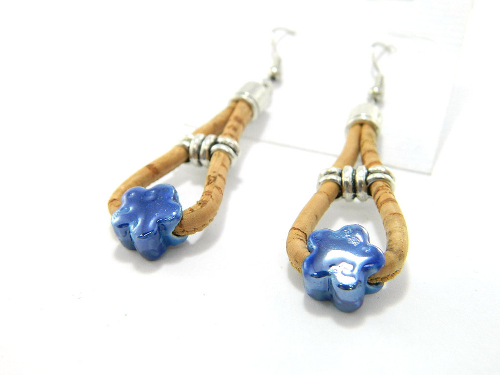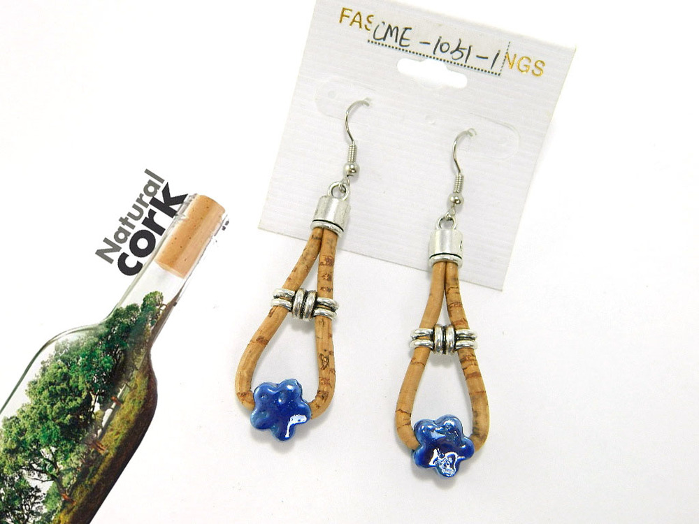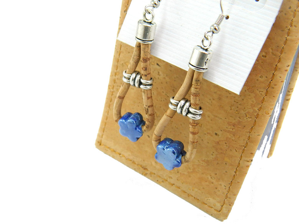 Beautifully hand crafted blue ceramics cork jewelry earrings is made predominantly from cork and zinc alloy. It is a natural material, each product made from it is subtly unique and the delivered item may differ slightly in their color and grain.
