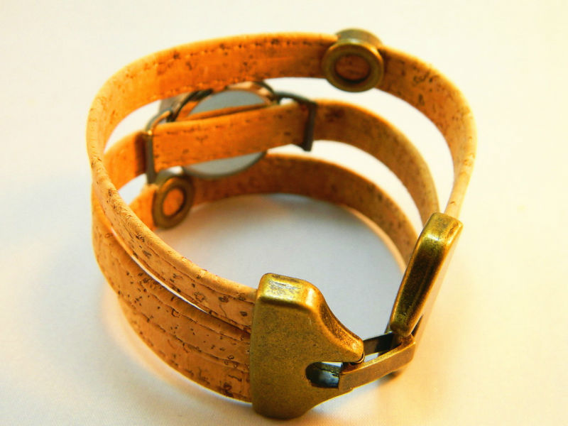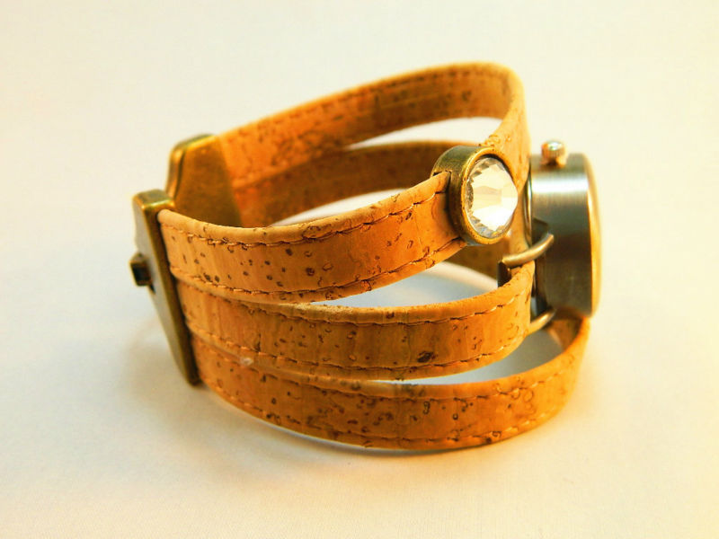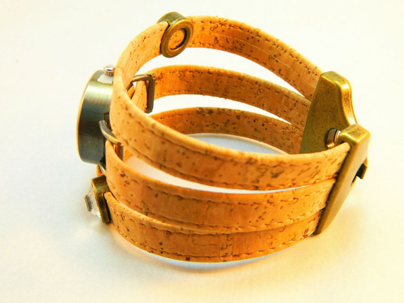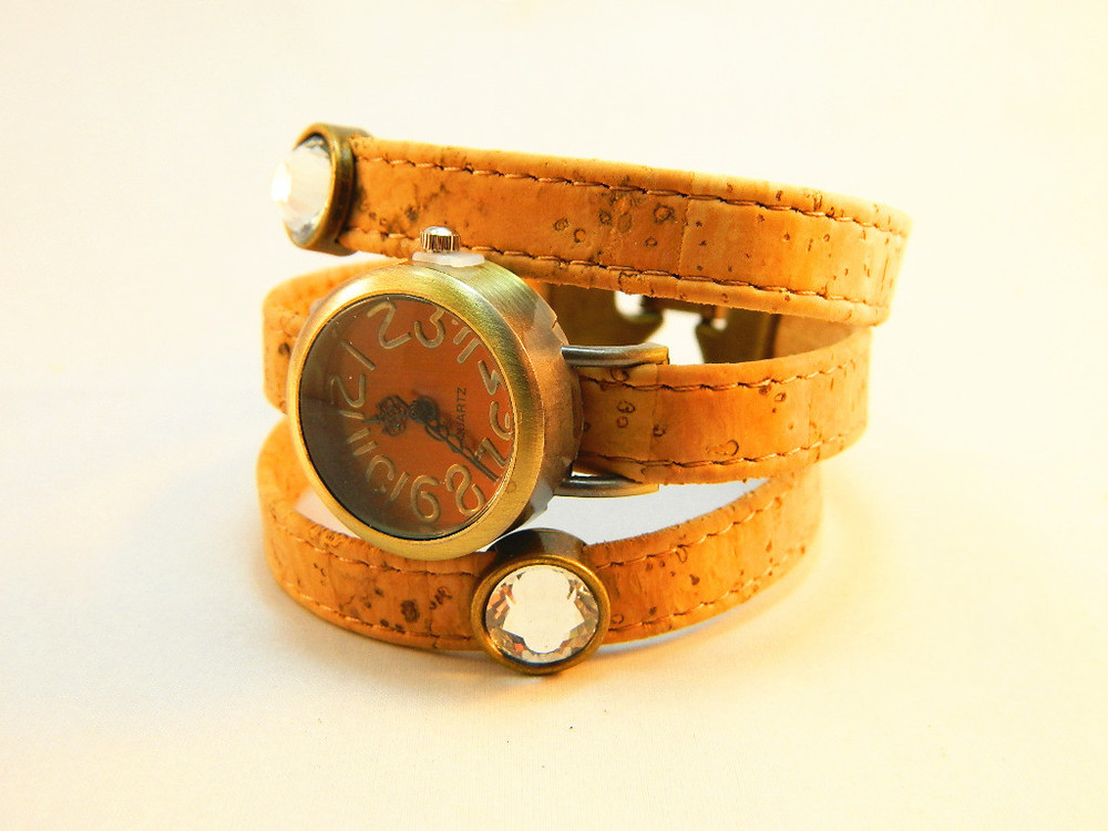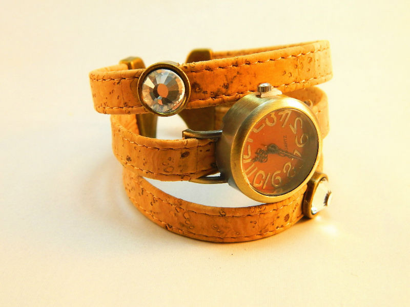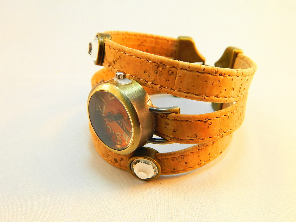 Beautifully hand crafted bronze diy dial with shiny stones cork wrist watch is made predominantly from cork. The style of this watch making it unique and strikingly alternative to traditional jewelry designs.