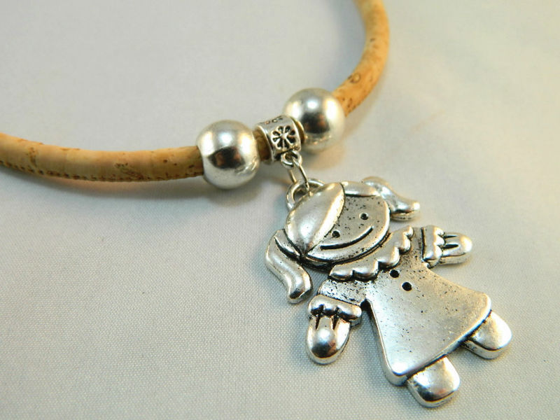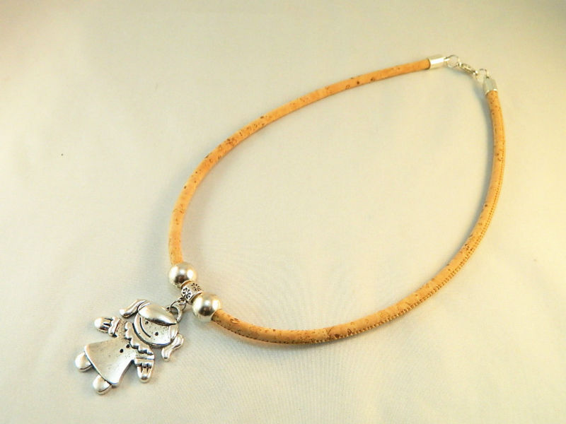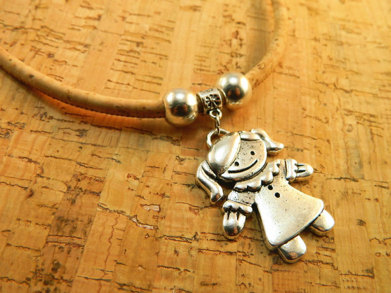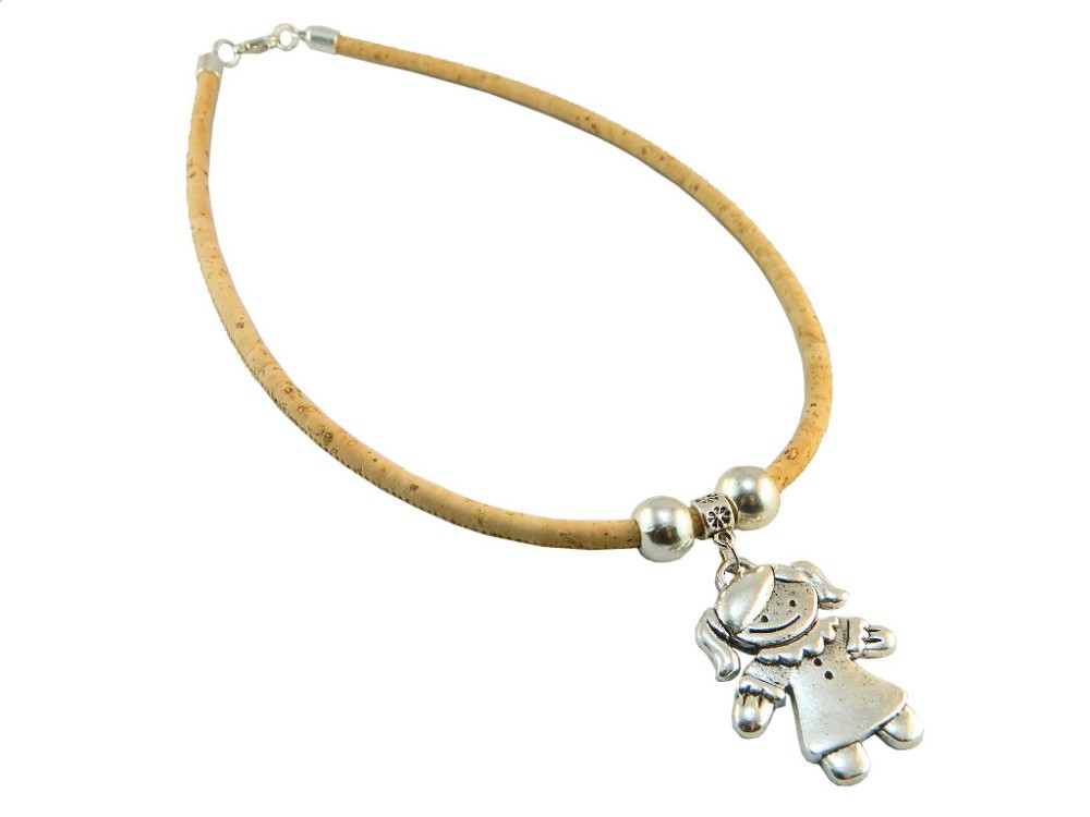 TerraCasca Handmade Cork Necklace with Charming One Girl Alloy Pendant