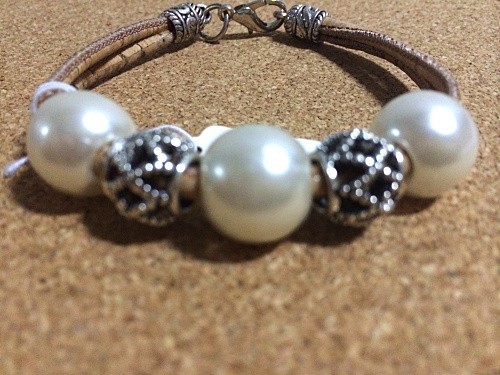 Beautifully hand-crafted corticar with pearls bracelet is made predominantly from cork and silver plated. It is a natural material, each product made from it is subtly unique and the delivered item may differ slightly in their color and grain.