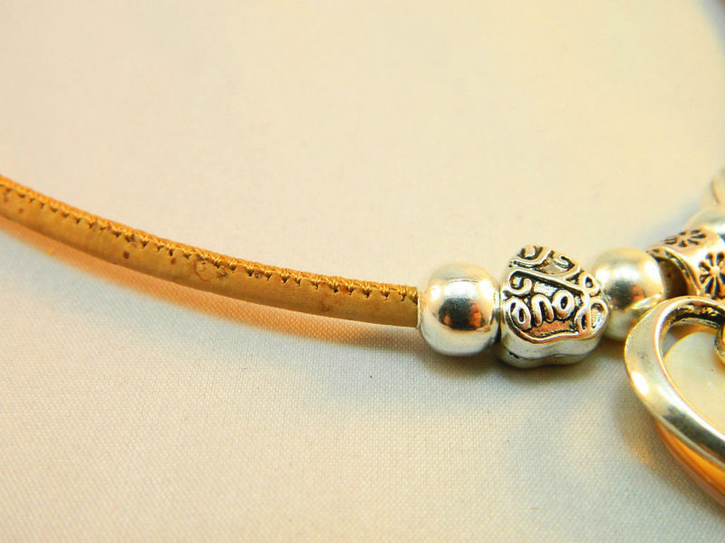 TerraCasca Handmade Cork Necklace with Double Love Heart Shell