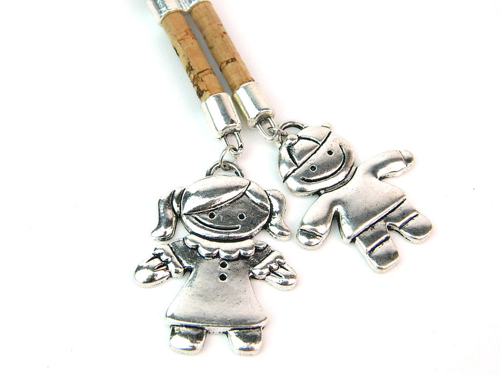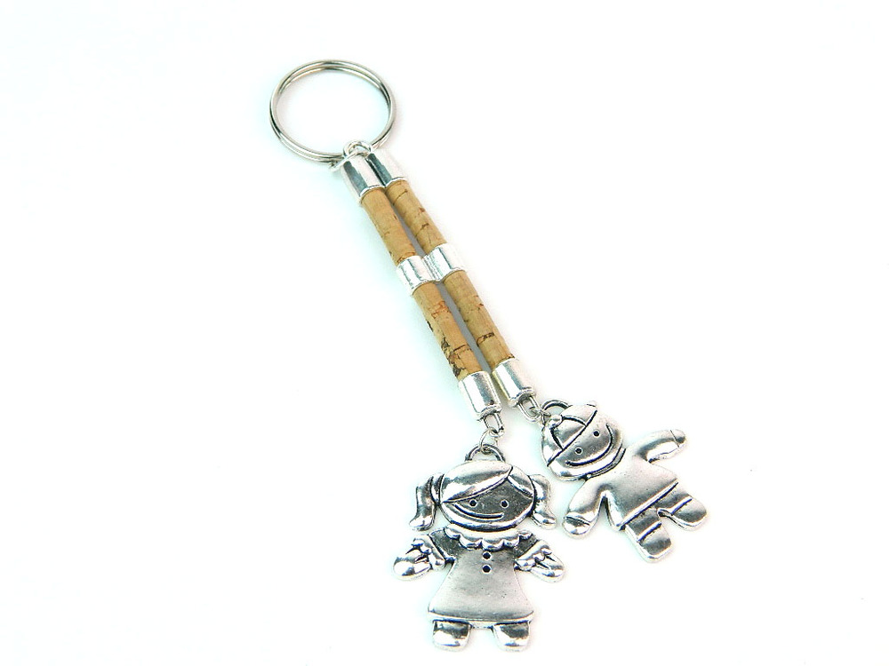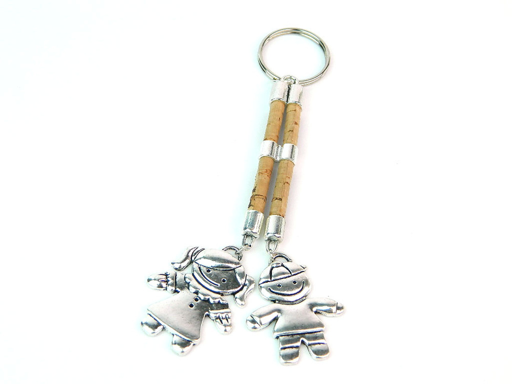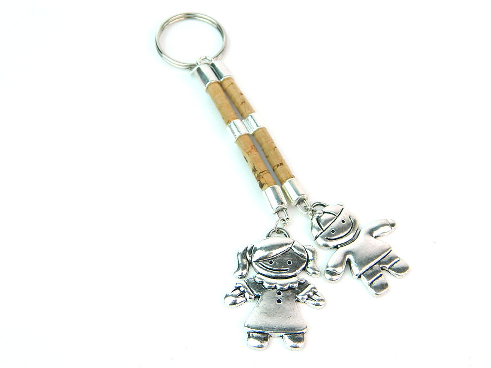 Beautifully hand crafted alloy one girl and boy cork key chain is made predominantly from cork and zinc alloy. The style of this key chain making it unique and strikingly alternative to traditional jewelry designs.