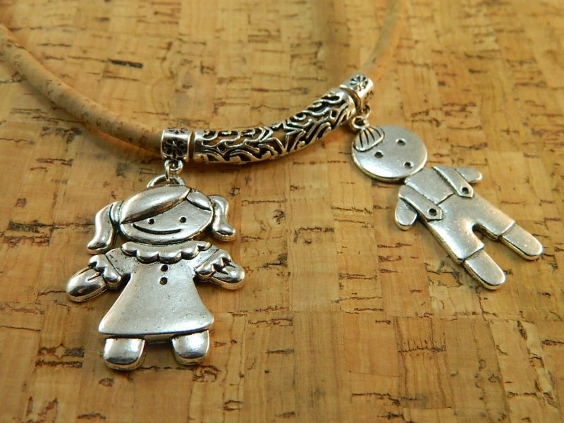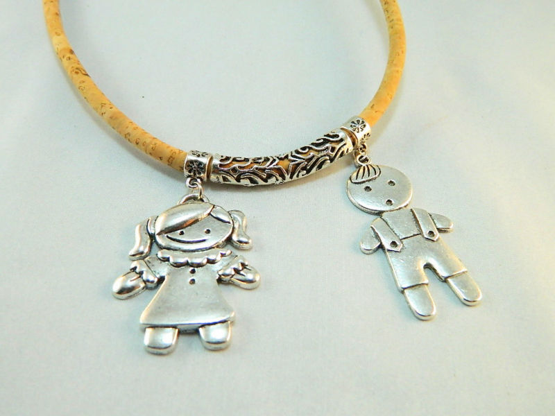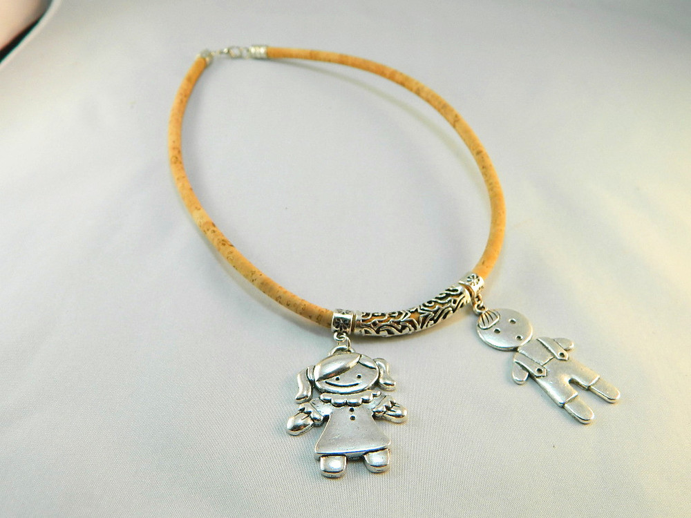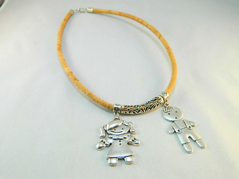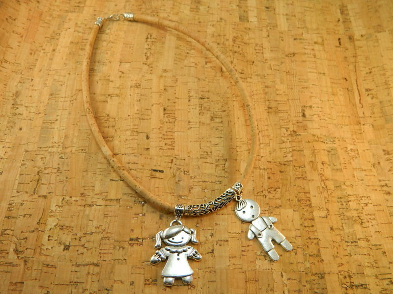 Be the first to review “TerraCasca Handmade Cork Necklace with One Girl and One Boy Alloy Pendant”