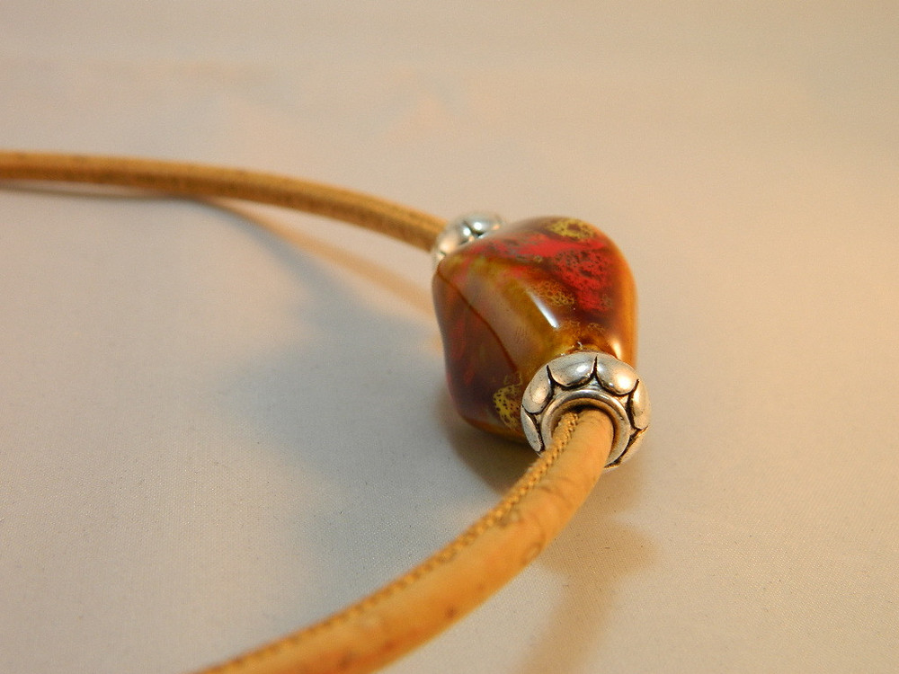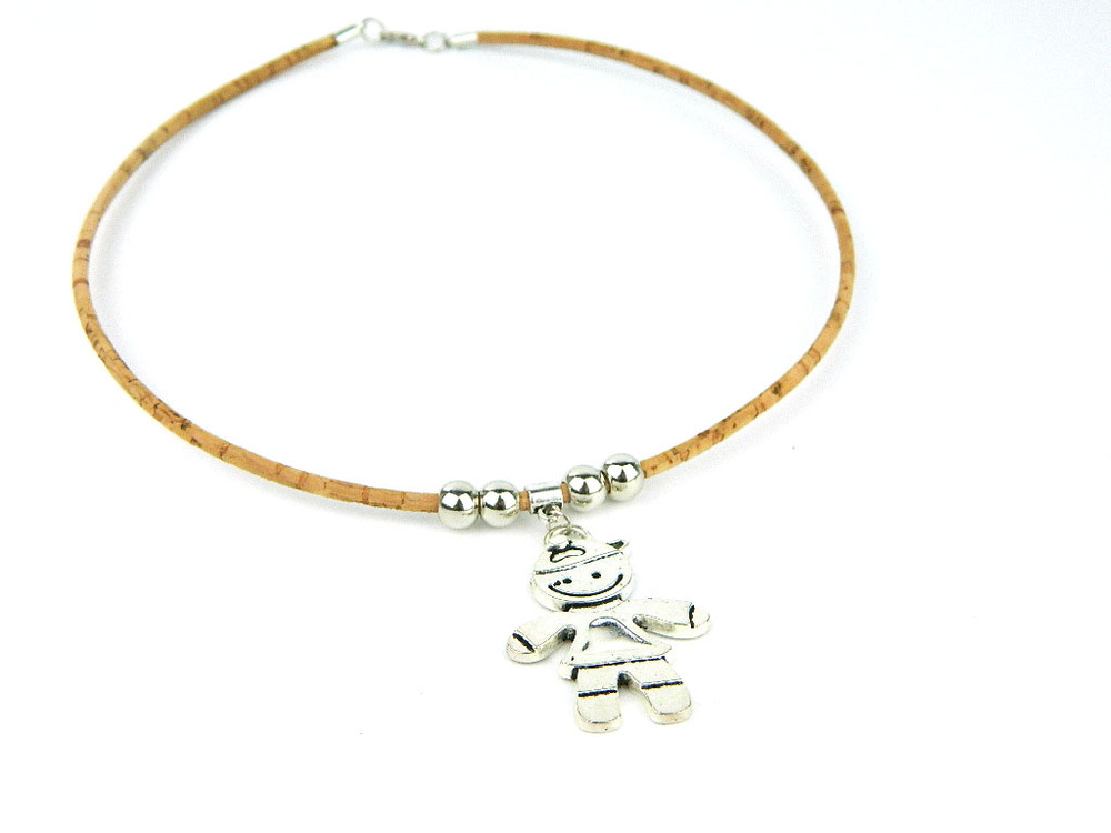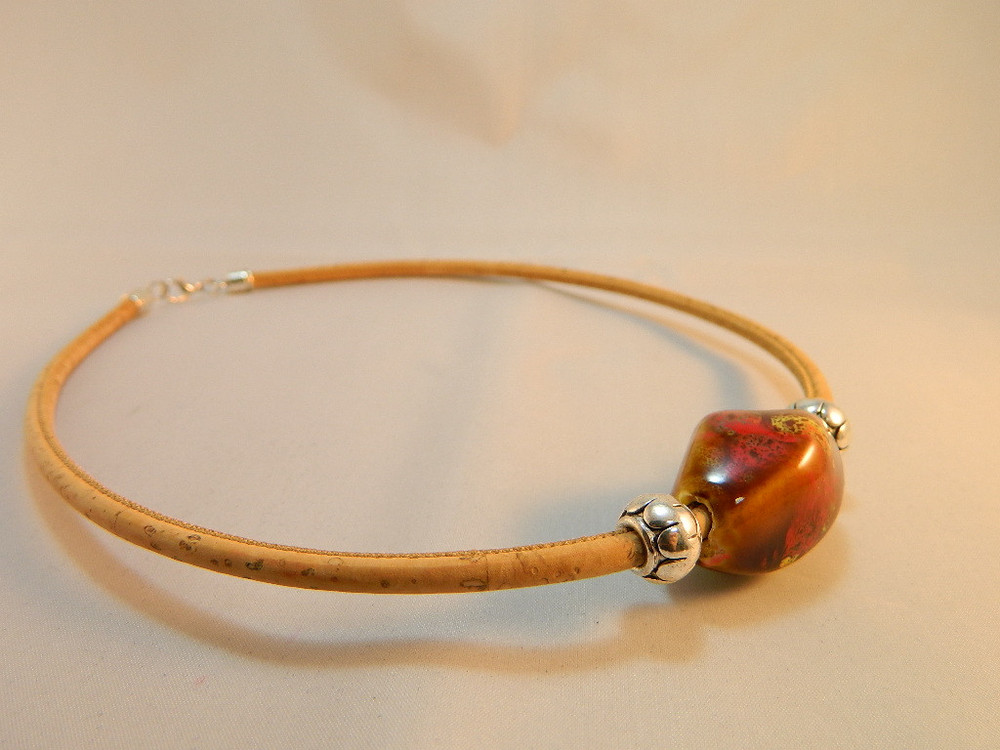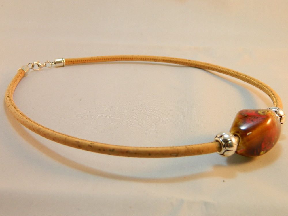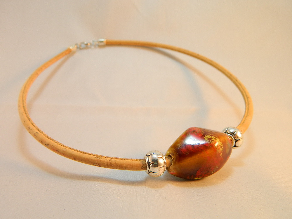 Beautifully hand crafted ceramic stone, necklace is made predominantly from cork and zinc alloy. The style of this necklace making it unique and strikingly alternative to traditional jewelry designs.