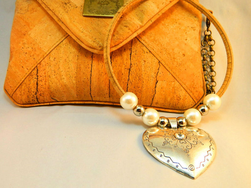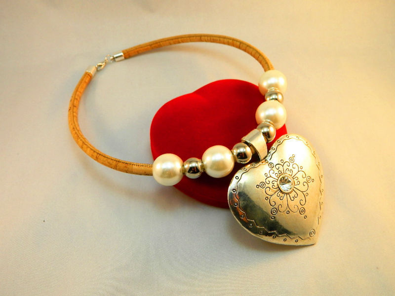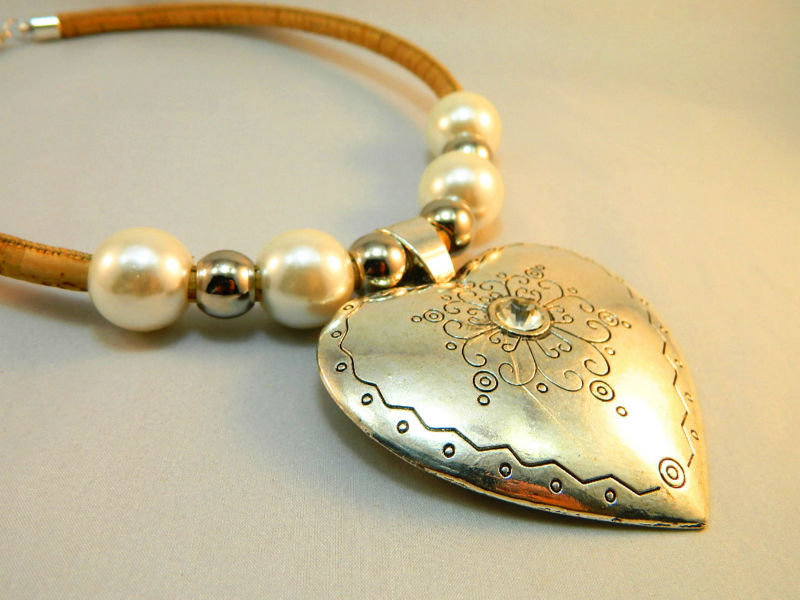 Beautifully hand crafted pendant large love heart necklace is made predominantly from cork and zinc alloy. The style of this necklace making it unique and strikingly alternative to traditional jewelry designs.
