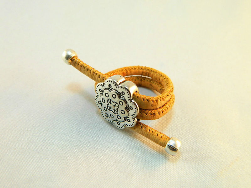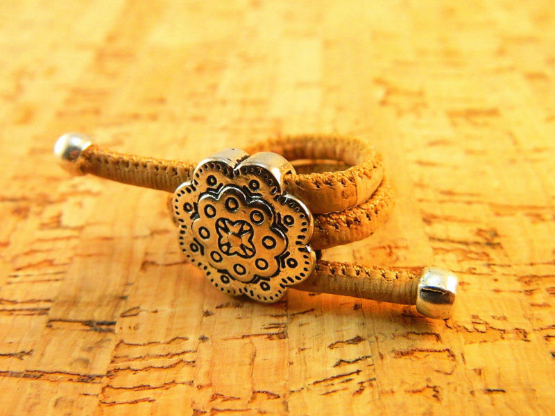 Beautifully hand crafted sliver and white alloy flower cork jewelry ring is made predominantly from cork and zinc alloy. The style of this ring making it unique and strikingly alternative to traditional jewelry designs.