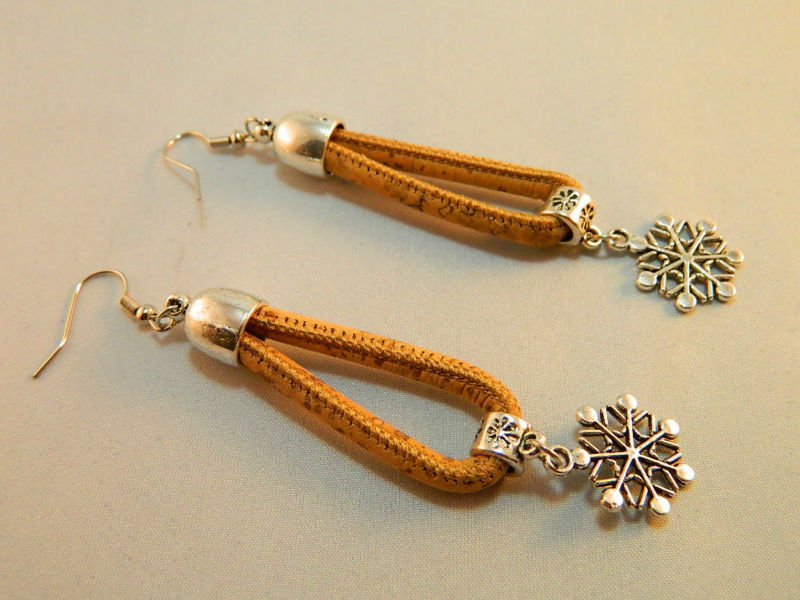 Beautifully hand crafted snowflake shape alloy accessories cork jewelry earrings is made predominantly from cork and zinc alloy. It is a natural material, each product made from it is subtly unique and the delivered item may differ slightly in their color and grain.