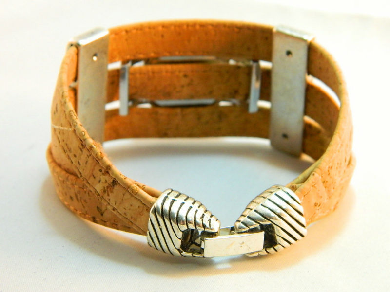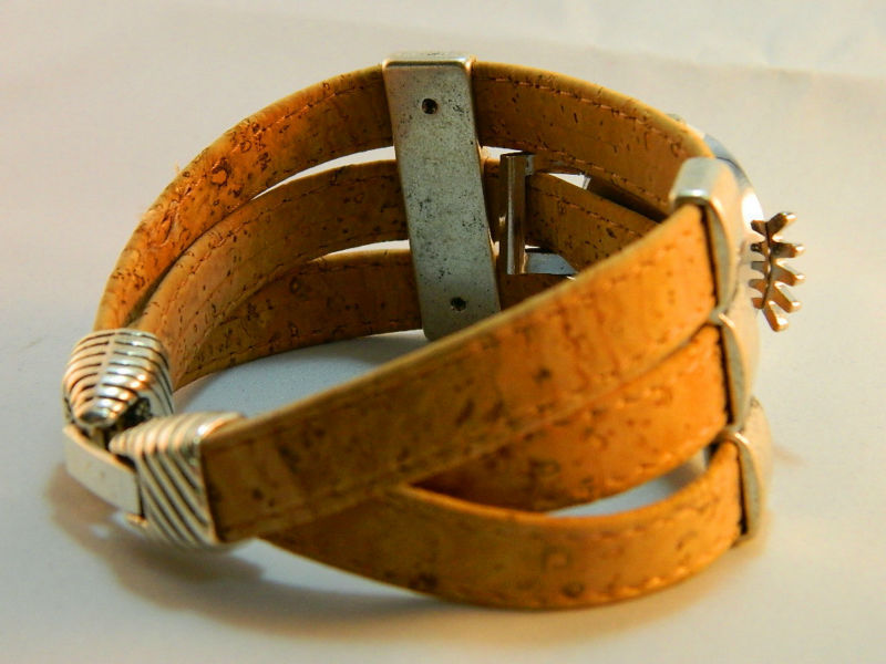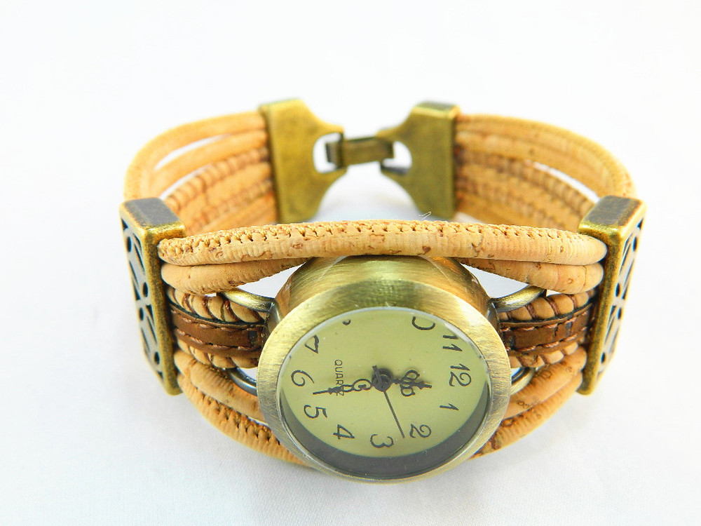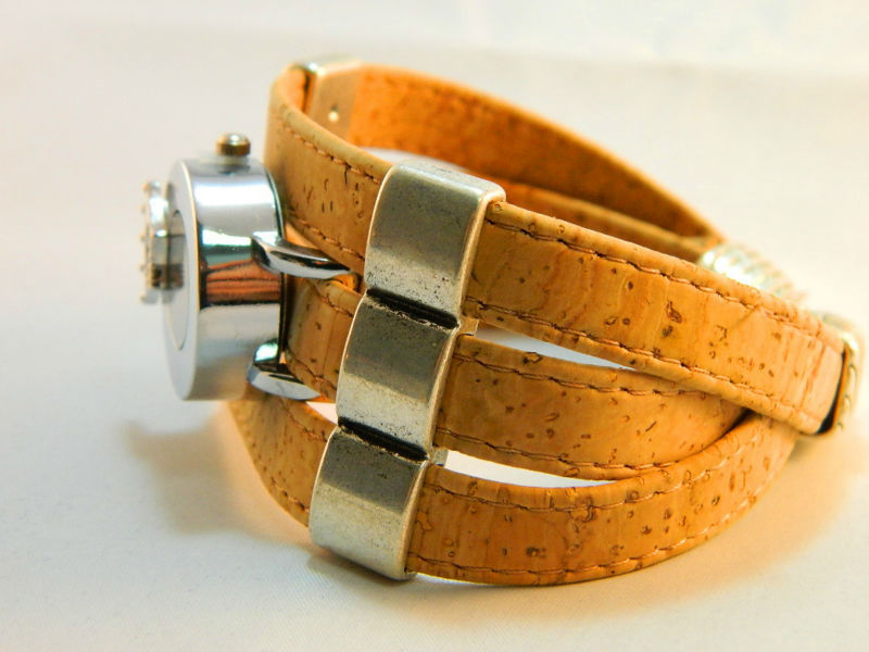 Beautifully hand crafted three rope silver and white crown molding cork wrist watch is made predominantly from cork. It is a natural material, each product made from it is subtly unique and the delivered item may differ slightly in their color and grain.