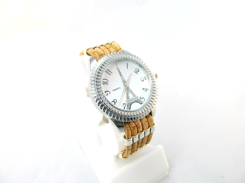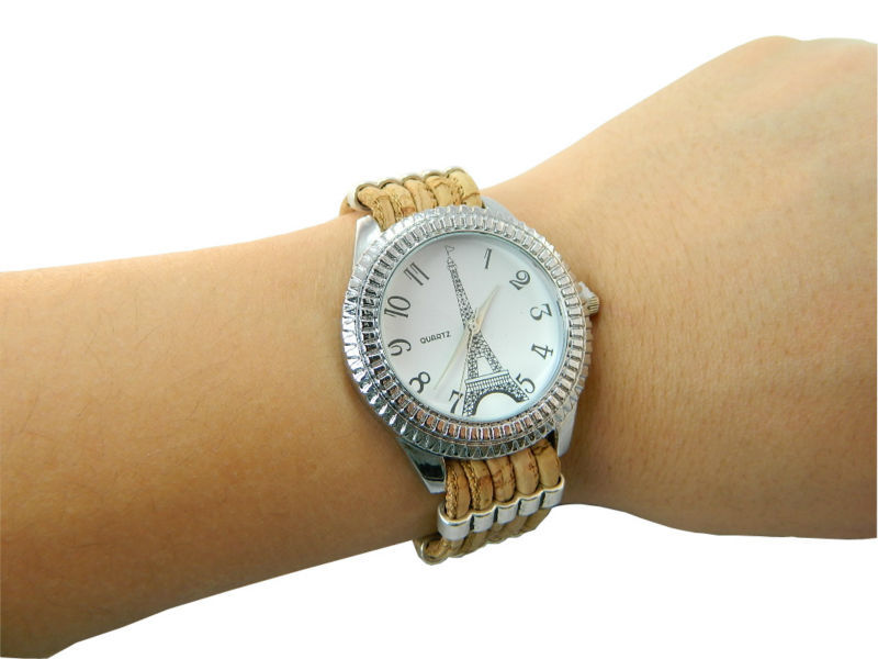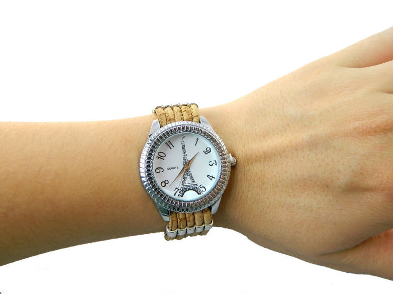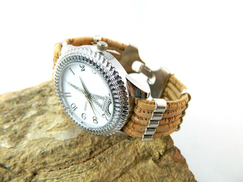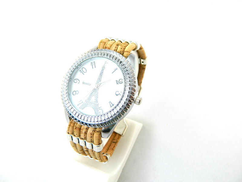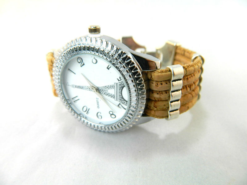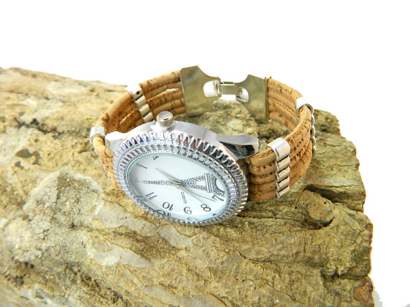 Beautifully hand crafted vintage style bronze dial cork wrist watch is made predominantly from cork. It is a natural material, each product made from it is subtly unique and the delivered item may differ slightly in their color and grain.